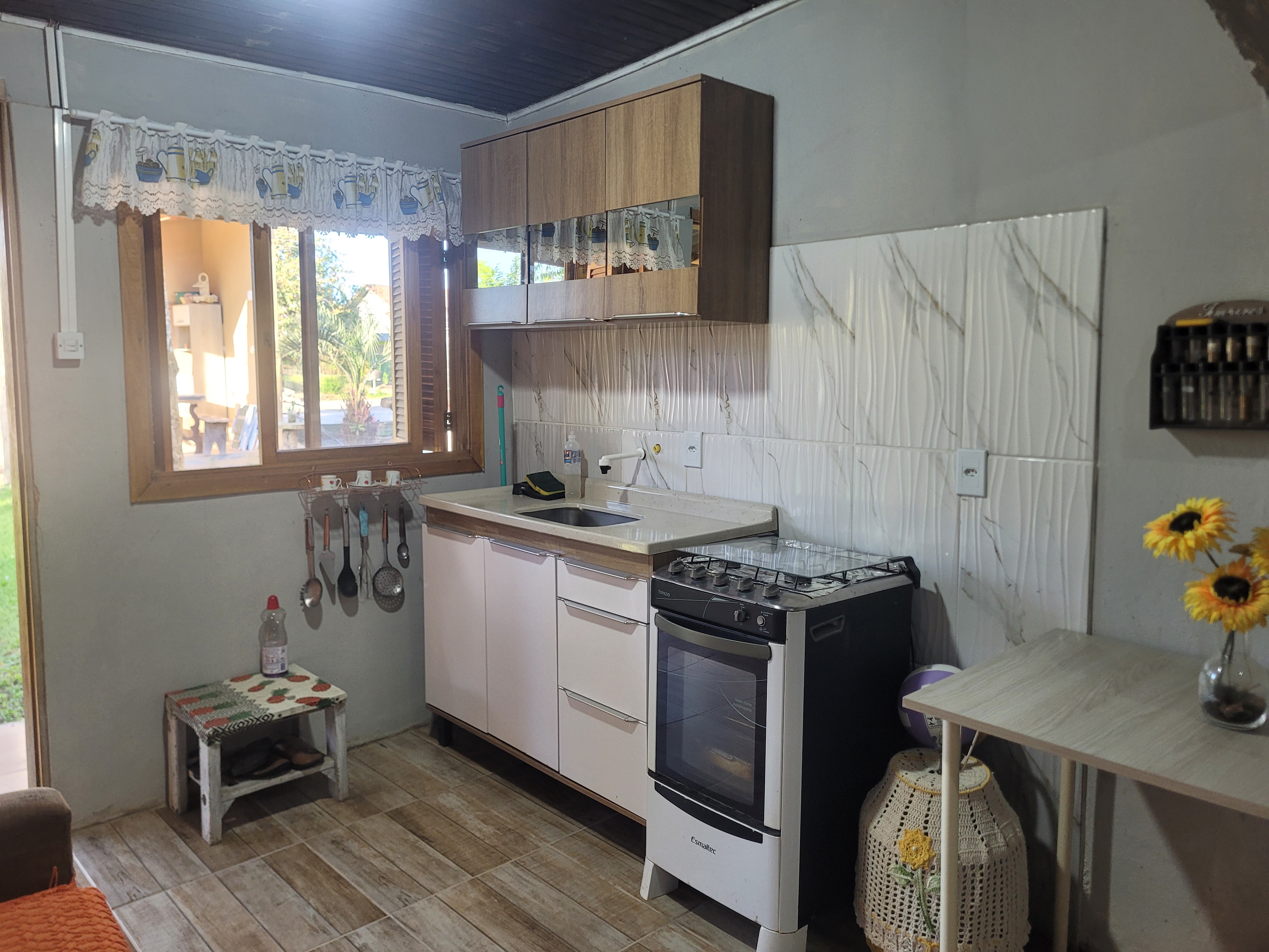 Casa com 4 dormitórios, 2 banheiros, 2 sala, 2 cozinha, lavanderia, garagem, pátio todo fechado, com frutifera, gramado, jardim, tudo bem organizado.